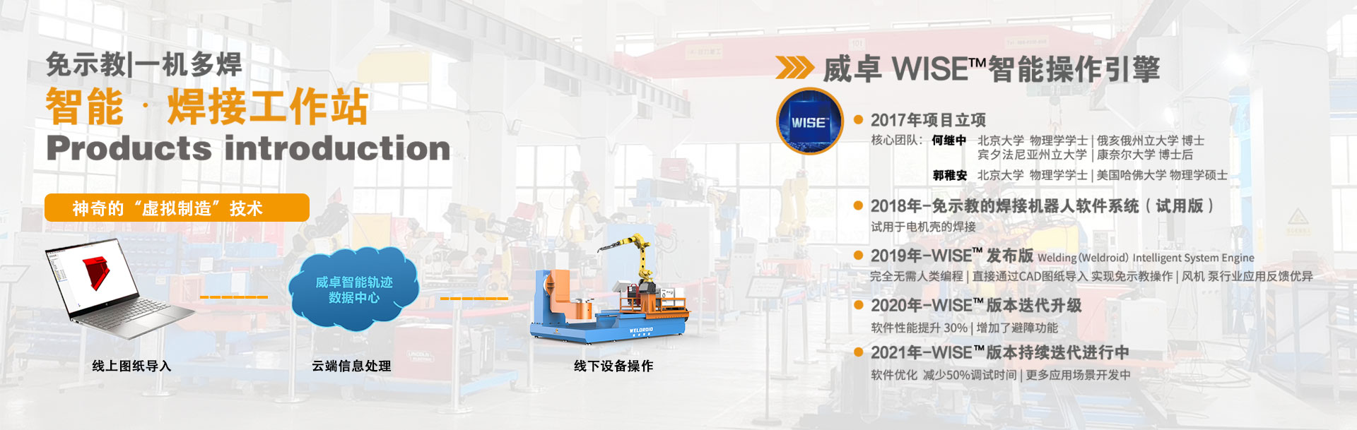 無錫威卓智能機器人有限公司成立于2017年,是無錫市政府引進的科技領軍型高新技術企業,公司研發(fā)團隊80余人,我們堅持自主創(chuàng)新,利用自主開發(fā)的虛擬制造技術對傳統焊接行業進行升級改造。 公司主推的工業風機系列-智能焊接工作站產品,具有免示教、實時跟蹤、簡易工裝、傻瓜式操作等優(yōu)點,真正幫助企業解決了招焊工難,用工成本高,焊接質量不穩(wěn)定等問題。